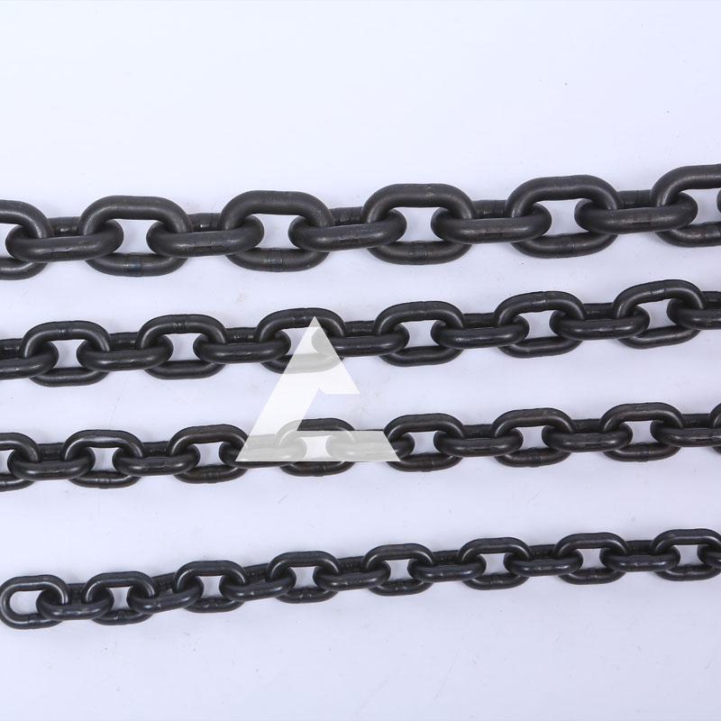 圓形起重鏈條出現變形后,要檢查鏈條變形的程度,輕微的變形可以繼續使用,但是要定期做好維護保養工作;起重鏈條出現變形后,在操作的時候,要起吊比額定載荷重量小的貨物來進行工作;如果起重鏈條的變形程度已經超過10%,這個時候要停止工作,做報廢處理,更換新的鏈條后再進行工作。