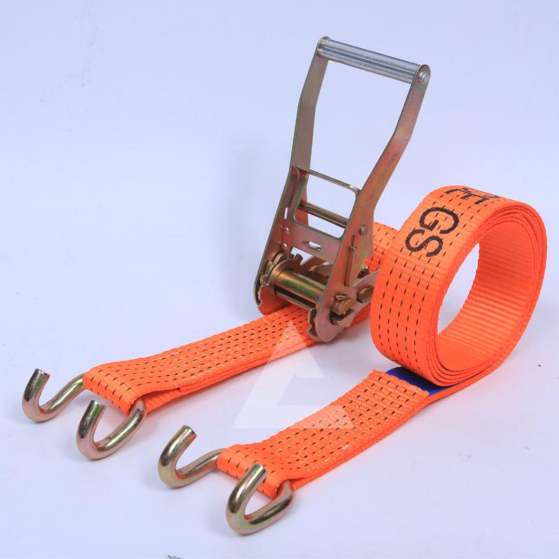 拴緊器又稱為緊固器,是在貨物的運輸、移動、裝運或者是倉儲的時候起到一個固定的作用,現在主要是用在卡車、拖車、輪船上或者是卡車上的鋼材、木材和各種管材物品的捆綁、拴緊使用。撼馬吊索具廠家生產不同型號的捆綁帶,有FF01型、FF02型、FF06型等多種產品,FF06型拴緊器是采用滌綸織帶縫制而成的,做工比較精密,具有捆扎牢固、不容易脫落、操作簡單等特點。這類拴緊器是手驅動的張力設備,手腕力可以達到500N,在運輸過程中可以保護物體不受到損壞。
