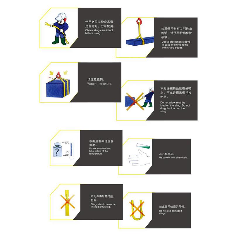 3.正確使用起重吊裝帶,在使用吊裝帶的時(shí)候,要根據(jù)吊裝帶的使用說(shuō)明進(jìn)行操作,不要超負(fù)載使用,不允許把吊帶進(jìn)行打結(jié)、扭曲,不要使用破損的吊帶。高強(qiáng)度吊裝帶應(yīng)該是要繞過(guò)所需吊裝物體,然后把兩端連接起來(lái)形成一個(gè)環(huán)形;4.避免過(guò)度使用吊裝帶,扁平滌綸吊裝帶的使用壽命是有限的,在使用過(guò)程中,要避免過(guò)度使用編織吊裝帶,以免影響壽命;